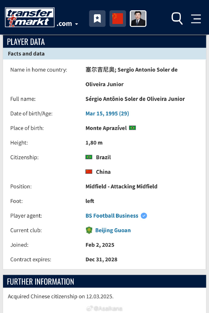 兩年之后,塞爾吉尼奧離開了日本,加盟了長春亞泰。在這里,他跟俱樂部拿到了中甲冠軍,成功升級。到2024年時他已經完成了亞泰百場里程碑,算是俱樂部的“名宿”了。因此,他對中國賽場也是格外的熟悉,不管是中甲、中超還是國家隊、亞洲賽事,他都很明白。