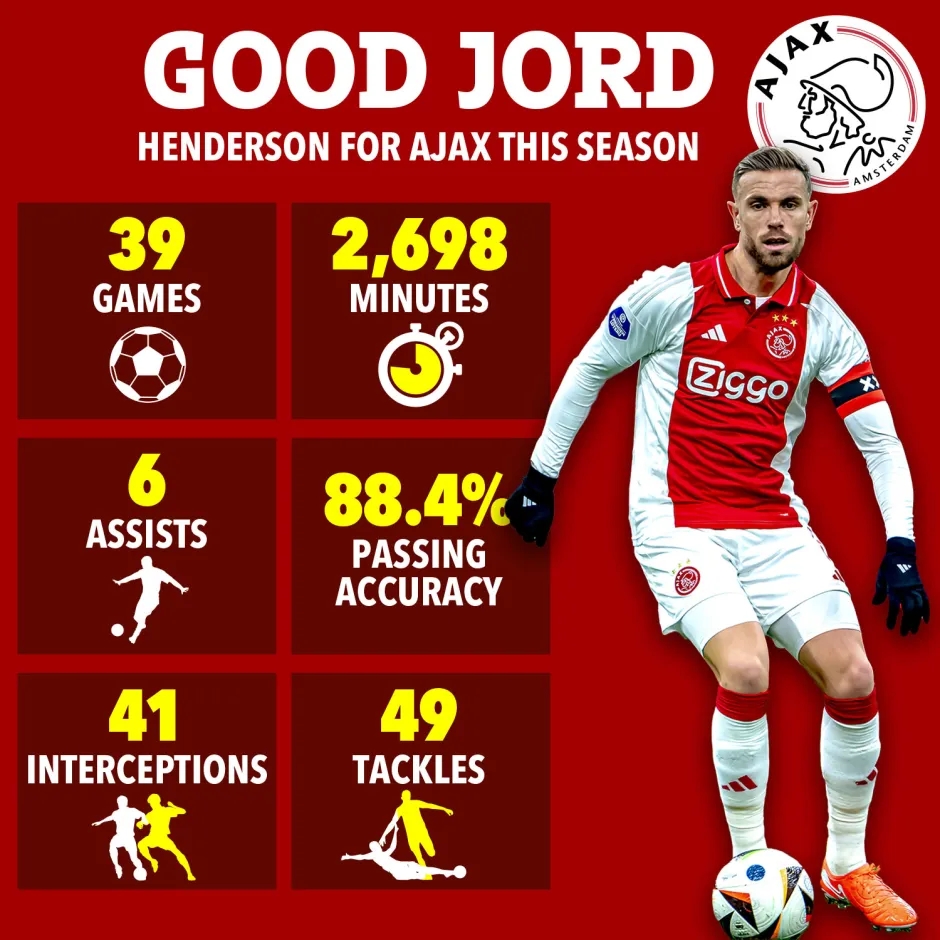 2025-03-19 22:28:41重返三獅軍團!34歲亨德森本賽季為阿賈克斯出戰39次貢獻6次助攻