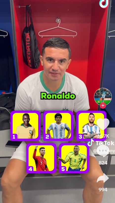 2025-02-25 15:01:10蒂姆-卡希爾選歷史最佳五人:貝利、老馬、梅西、C羅、羅納爾多