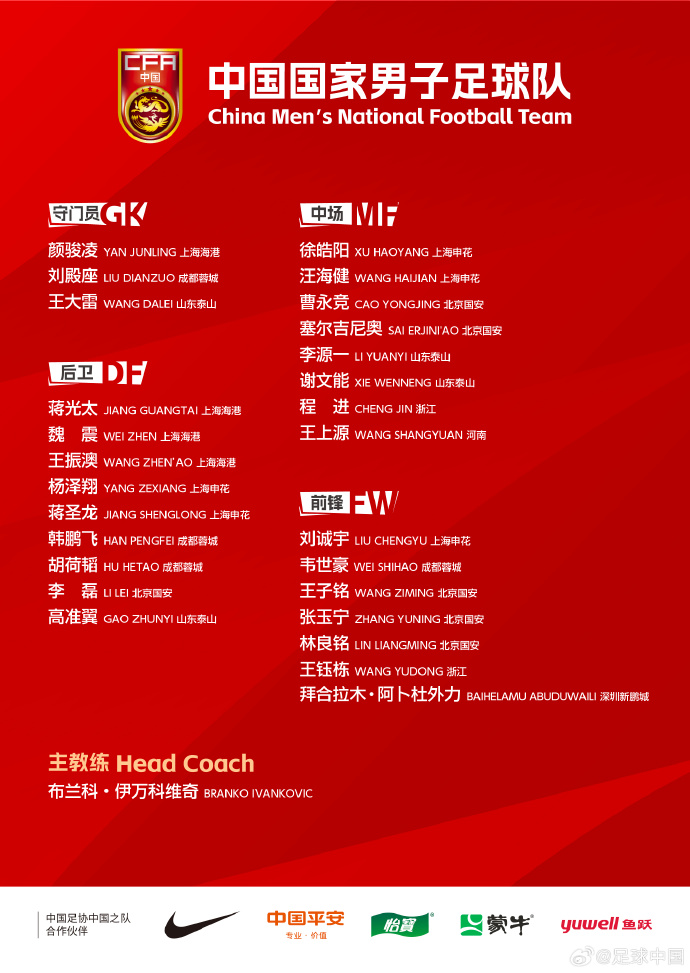 規(guī)則規(guī)定,中國隊本場比賽至多報名23名人。從相關(guān)訊息渠道獲知,根據(jù)球隊的訓(xùn)練情況,落選球隊本場比賽報名陣容的4名很可能分別是來自國青前鋒王鈺棟、劉誠宇、中場球員程進、邊后衛(wèi)王振澳,歸化新人塞爾吉尼奧確定入選。