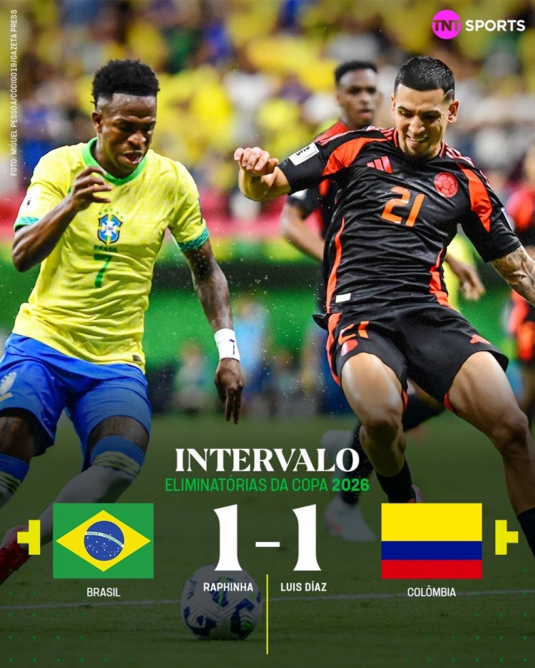 2025-03-21 11:57:52半場-拉菲尼亞點射維尼修斯造點迪亞斯扳平 巴西1-1哥倫比亞