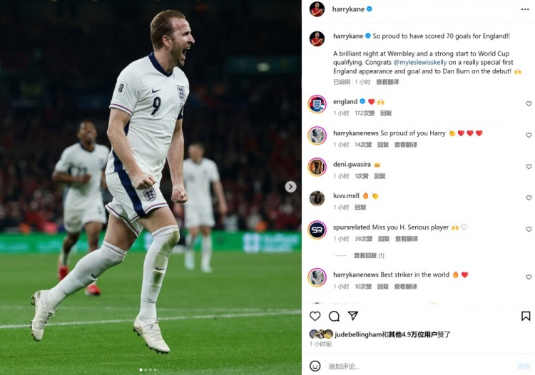 2025-03-22 10:59:05凱恩社媒曬照:自豪打進(jìn)在英格蘭的第70球,祝賀斯凱利首秀破門