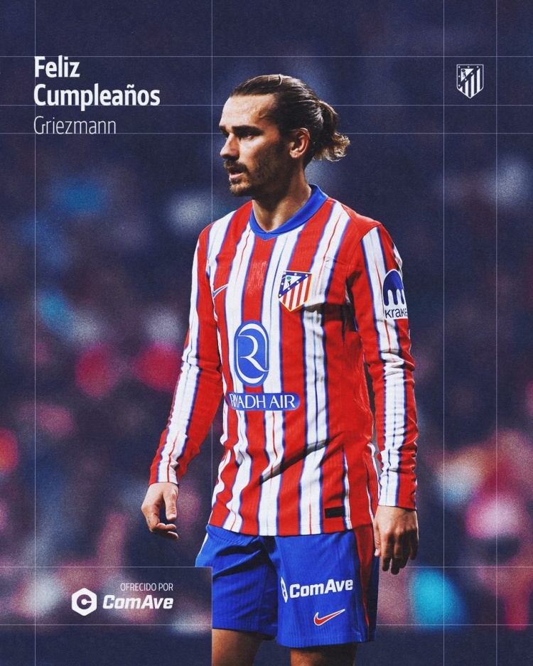 2025-03-22 11:07:19本賽季42場16球7助攻!馬競官方為格列茲曼34歲生日送上祝賀