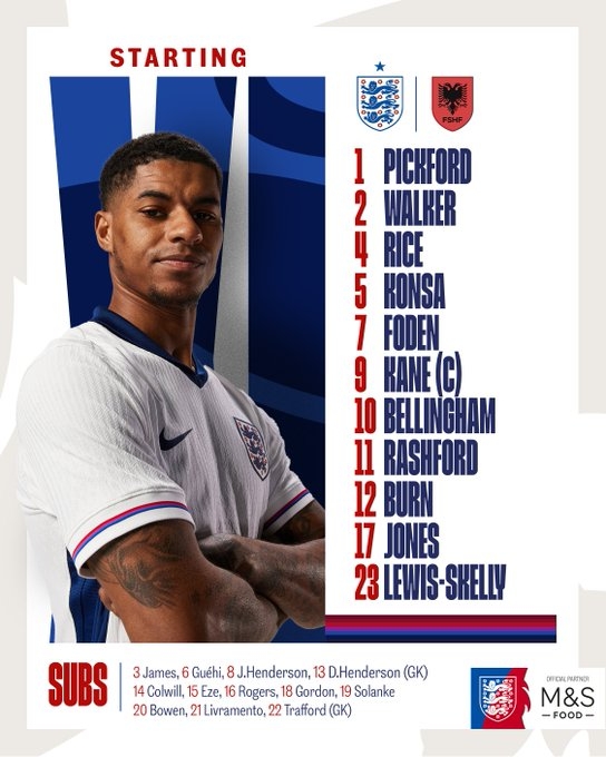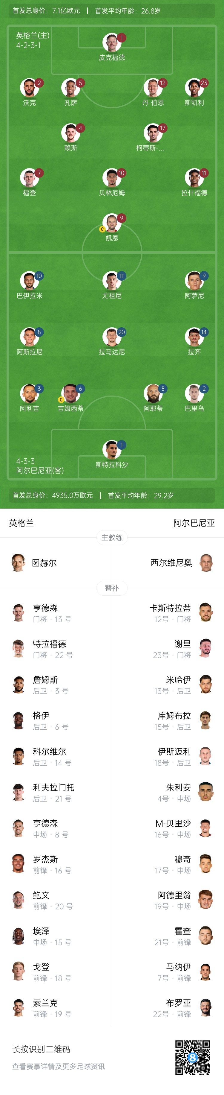 2025-03-22 11:07:52英格蘭vs阿爾巴尼亞首發(fā):凱恩、貝林、拉什福德先發(fā)、斯凱利首秀
