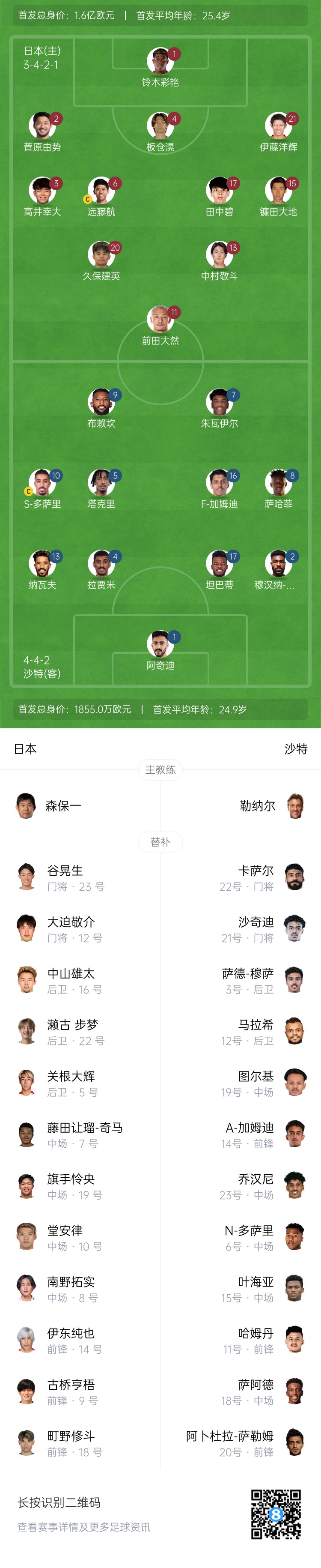 03月25日訊 北京時間18點35分,世預賽亞洲區第三階段C組第8輪,日本vs沙特,賽前雙方首發公布!日本已經提前鎖定2025年世界杯席位,本場比賽他們對首發進行了輪換。
