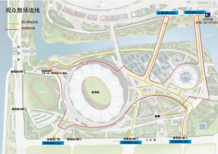 2.公交出行:因賽事當天下午4時左右,飛虹路、科技館街將實施交通管制,周邊將無地面公交可直接到達奧體中心,建議觀眾乘坐地鐵抵達體育場。