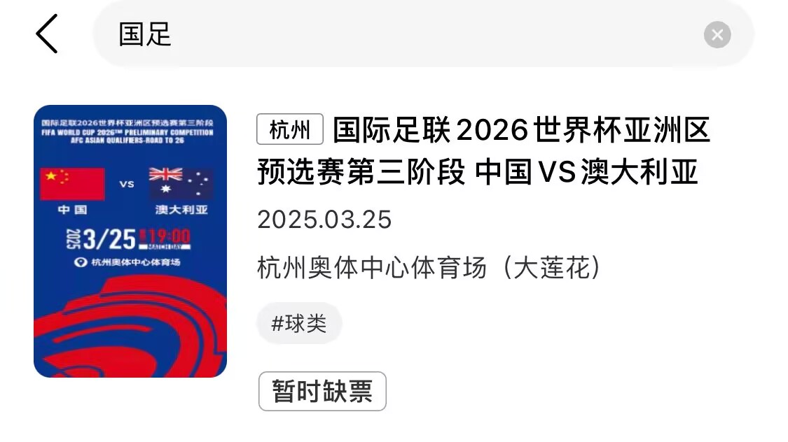 2025-03-25 18:29:10有錢也買不到了!黃牛平臺顯示,國足vs澳大利亞已缺票