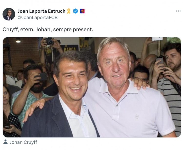2025-03-25 18:33:21克魯伊夫逝世九周年,拉波爾塔社媒曬合照悼念:永恒不朽