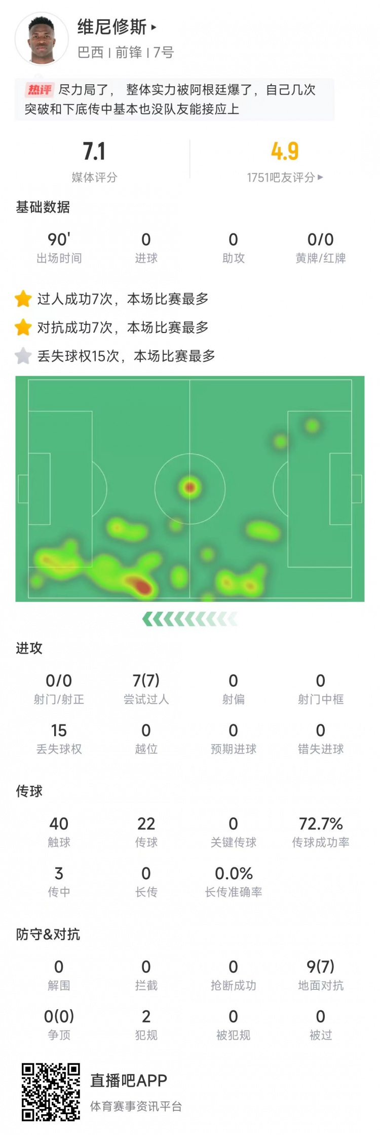2025-03-26 11:17:28維尼修斯本場數(shù)據(jù):踢滿90分鐘0射門,7次成功過人全場最多