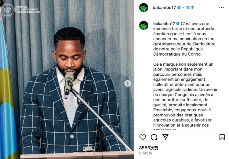 2025-03-28 13:13:05巴坎布曬就任民主剛果農業大使照:讓我們共同助力農業可持續發展