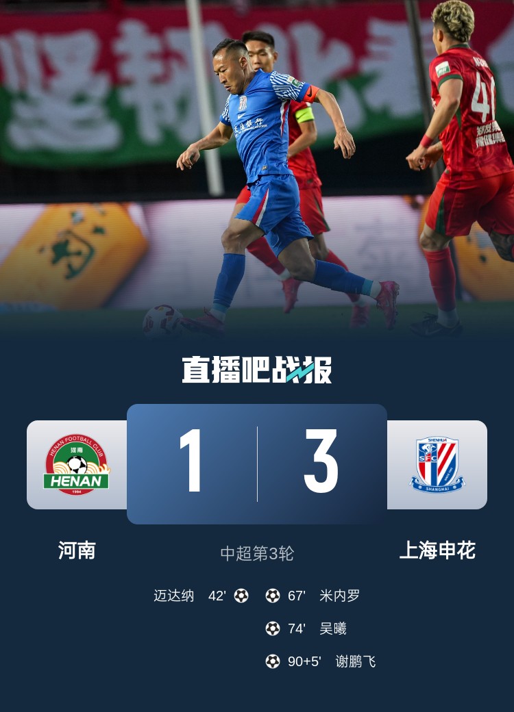 昨晚中超第三輪,申花做客河南,對(duì)手一球領(lǐng)先后,申花在下半場(chǎng)的半小時(shí)內(nèi)連入3球完成逆轉(zhuǎn)。這一幕,好似上賽季第28輪,申花主場(chǎng)對(duì)陣河南隊(duì)的劇本重演。當(dāng)時(shí)申花球門被對(duì)方前鋒科維奇攻破,比賽僅剩下半小時(shí),結(jié)果特謝拉和吳曦先后入球,尤其吳曦的破門發(fā)生在終場(chǎng)哨響前。依靠這場(chǎng)逆轉(zhuǎn),申花在積分榜上反超海港,再度占據(jù)頭名位置。