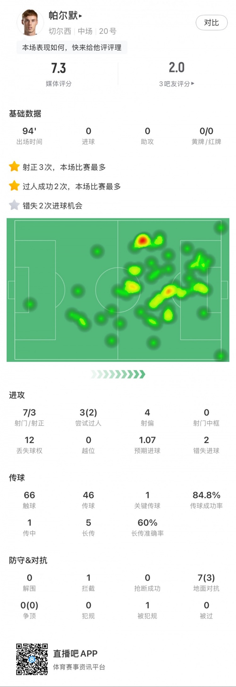 2025-02-26 10:02:24帕爾默全場數據:7次射門3次射正,2次錯失絕佳機會