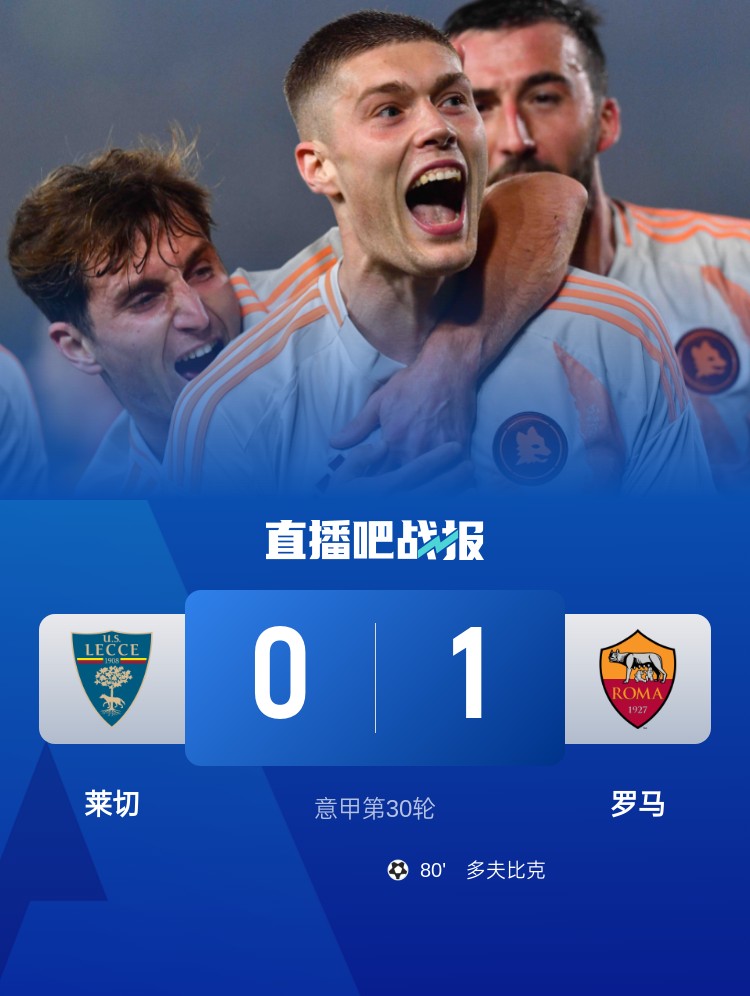 意甲第30輪,萊切0-1羅馬。上半場,科內錯失良機;下半場,小曼奇尼進球被吹,多夫比克低射制勝。