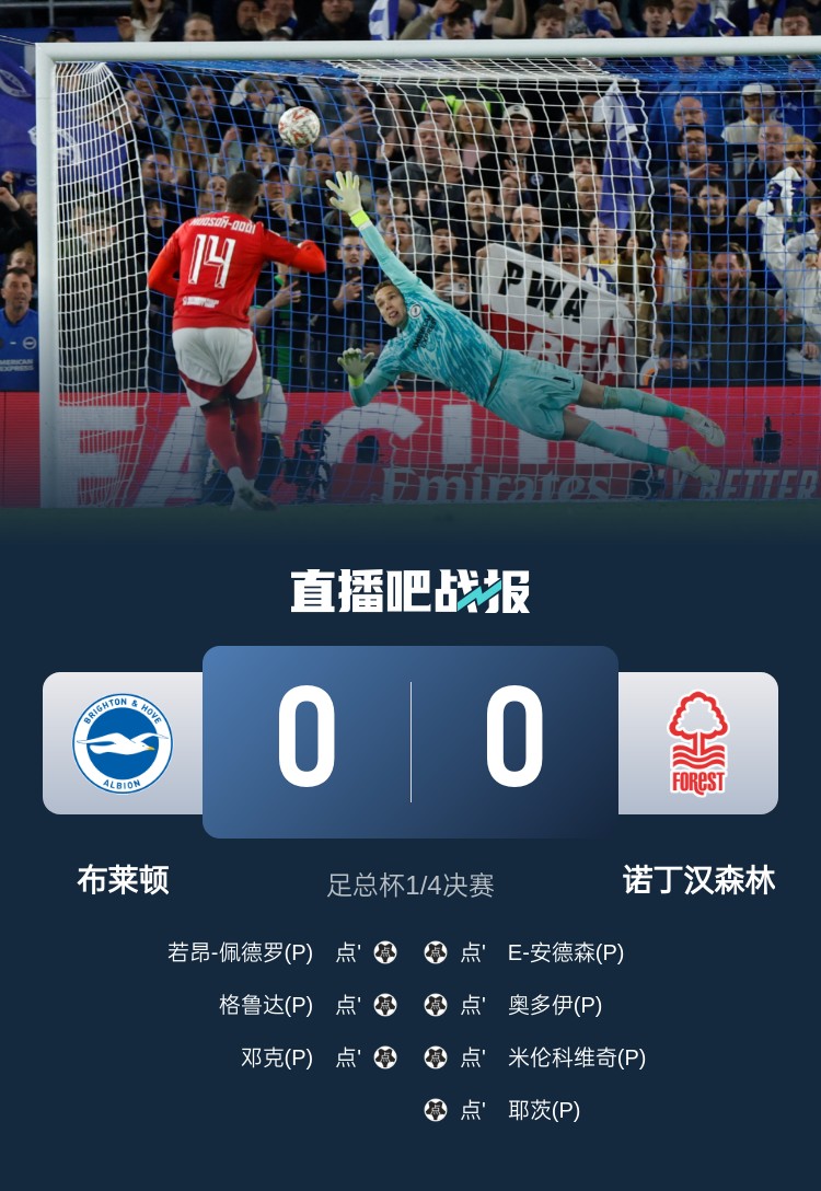 足總杯-布萊頓點球大戰3-4諾丁漢森林遭淘汰 塞爾斯兩撲點
