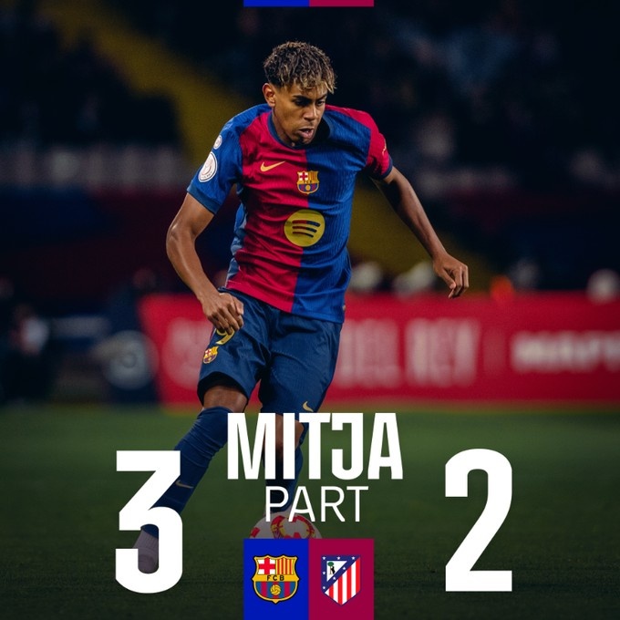 半場結束,巴薩暫3-2馬競。