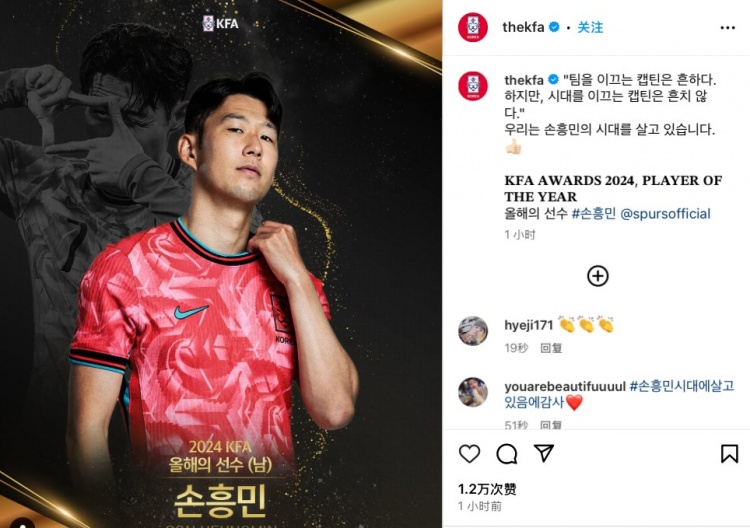 2025-03-31 12:02:14官方:孫興慜當(dāng)選韓足協(xié)2024年度最佳球員,第8次獲得該獎(jiǎng)項(xiàng)