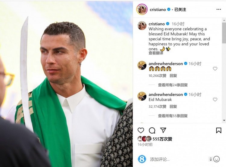 2025-03-31 12:02:36C羅社媒送開齋節(jié)祝福:愿這個日子給大家?guī)硐矏偂矊幣c幸福