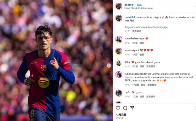 2025-03-31 12:03:14佩德里社媒感謝球迷:主場仿佛有魔力,有你們支持一切都更容易