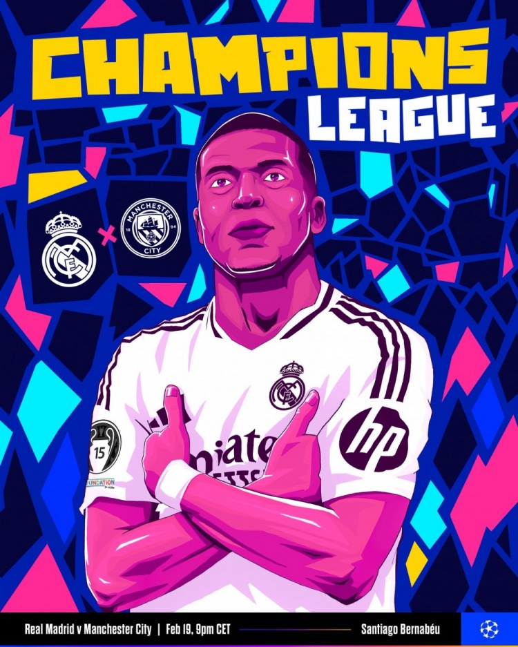 2025-02-19 20:25:02皇馬社媒發(fā)布歐冠對陣曼城海報:姆巴佩做出標志性慶祝動作