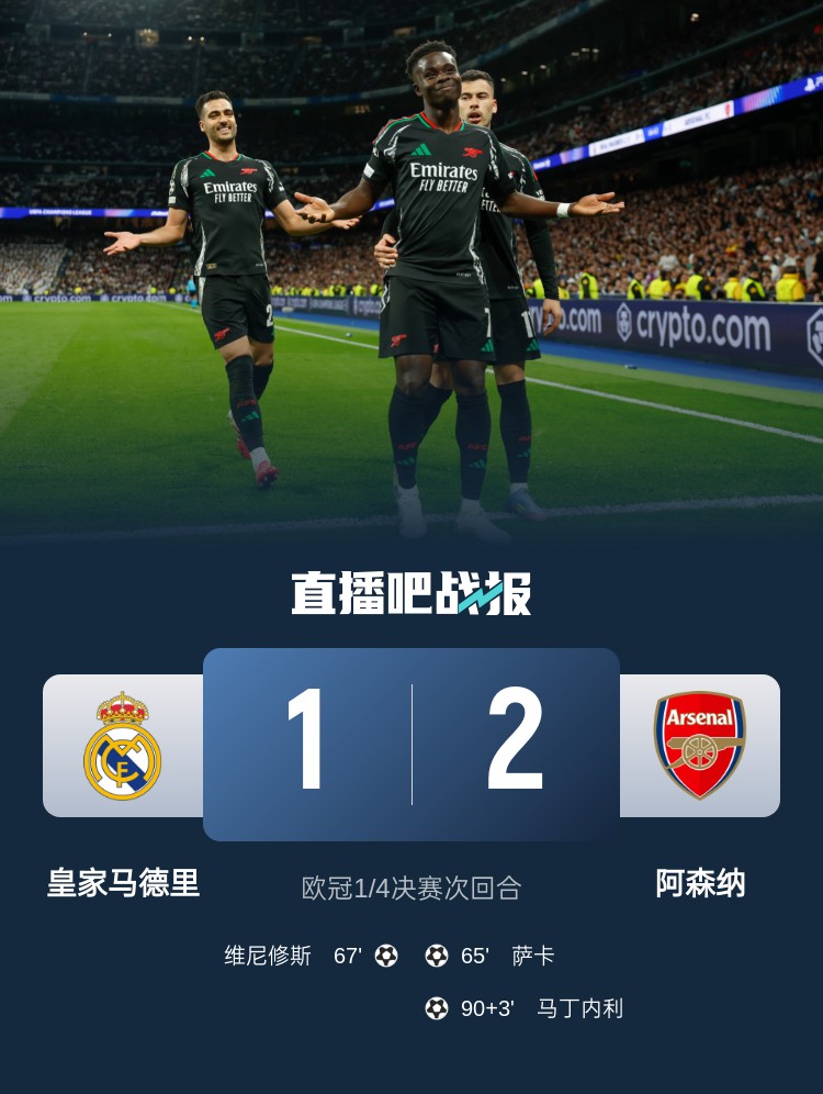 2025-04-17 06:13:47克星!阿森納4次對陣皇馬保持不?。?勝1平,打進(jìn)6球只丟1球
