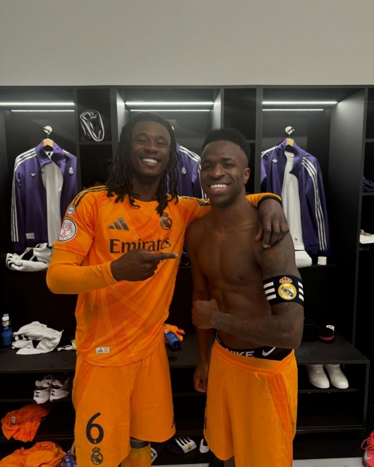 2025-02-27 10:00:15卡馬文加社媒曬照:與隊長維尼修斯的合照