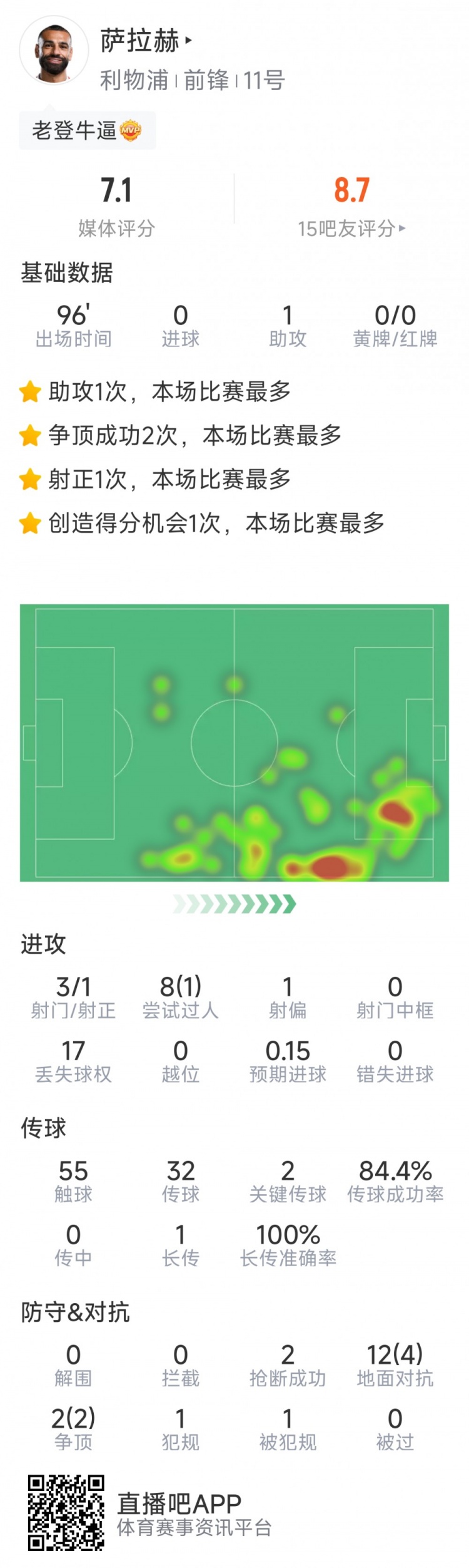 2025-02-27 10:01:46薩拉赫本場數(shù)據(jù):1次助攻,2次關(guān)鍵傳球,3次射門1次射正