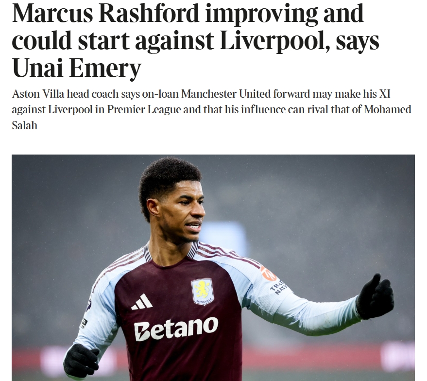 02月19日訊 明天凌晨3:30,維拉將在主場迎戰(zhàn)利物浦,賽前維拉主帥埃梅里透露,曼聯租將拉什福德本場有望首發(fā)。