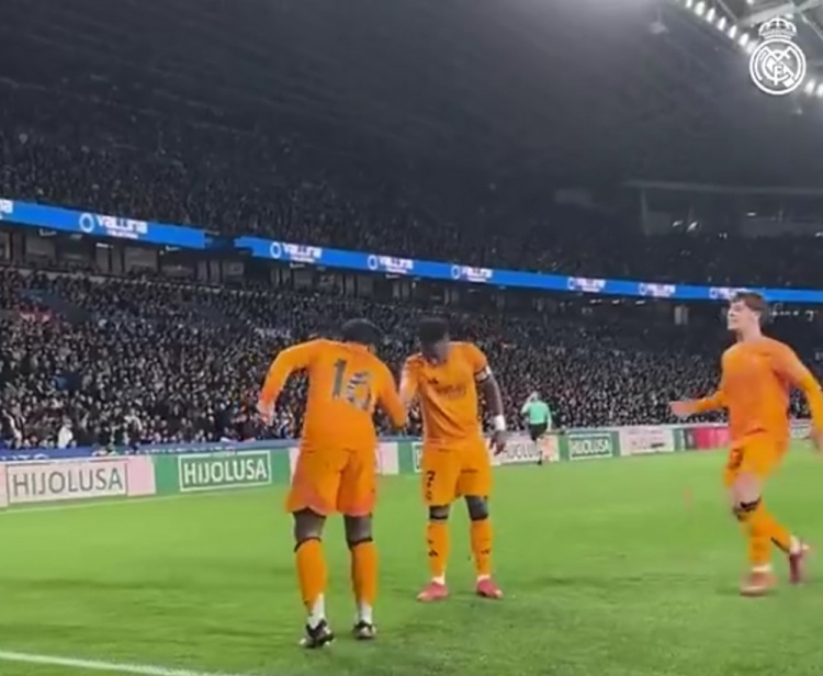 2025-02-27 20:07:12國王杯戰(zhàn)勝皇家社會,恩德里克進(jìn)球后與維尼修斯握手慶祝