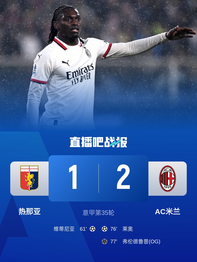 萊奧破門,菲利克斯造烏龍,米蘭2-1擊敗熱那亞,各項賽事取得三連勝。
