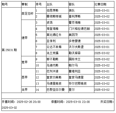 2025-02-28 20:06:22傳足勝負(fù)彩第25031期看點(diǎn):曼城爭(zhēng)冠絕路 意甲天王山