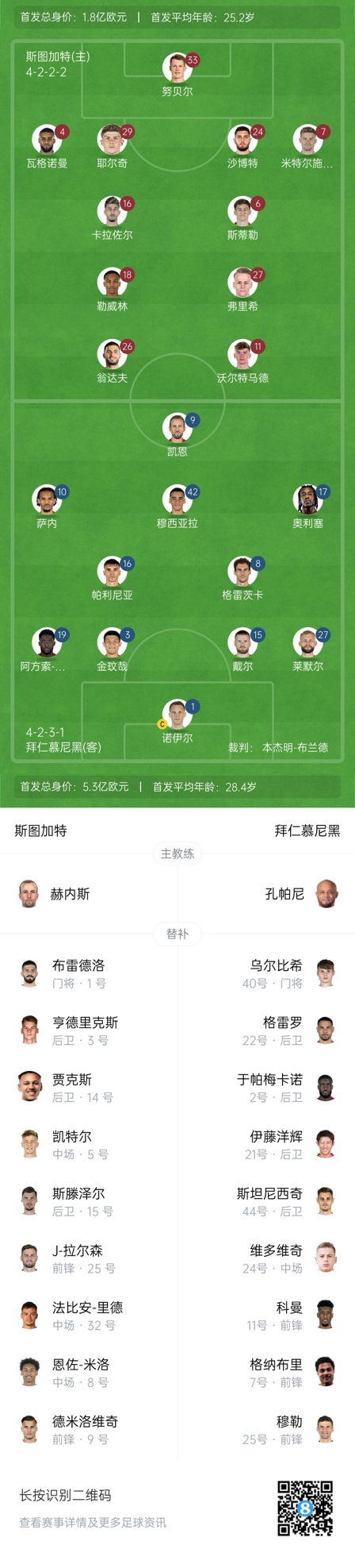 3月1日訊 德甲第24輪,斯圖加特主場迎戰拜仁慕尼黑,賽前首發名單公布。