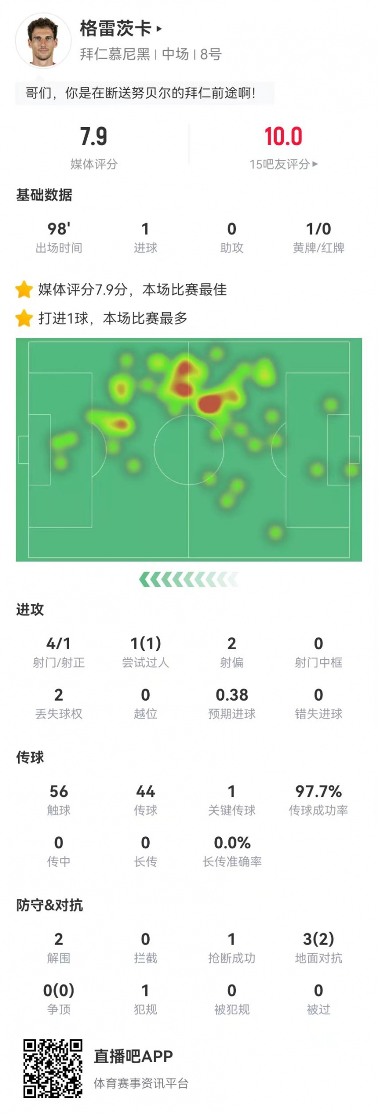 2025-03-01 10:01:41格雷茨卡本場1球+1關(guān)鍵傳球 44傳球43成功 獲評7.9分全場最高