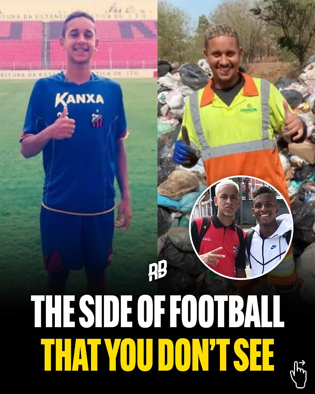 據(jù)rising baller介紹,曾經(jīng)在球場(chǎng)與羅德里戈同場(chǎng)競(jìng)技的一位小球員,現(xiàn)已經(jīng)退役成了垃圾場(chǎng)工人。