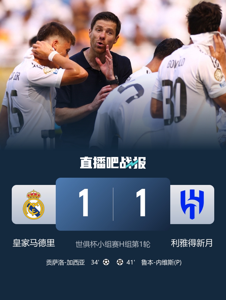 2025-06-19 05:13:142025年06月19日 龍哥無緣開門紅!皇馬1-1新月 巴爾韋德補(bǔ)時(shí)失點(diǎn)21歲貢薩洛破門