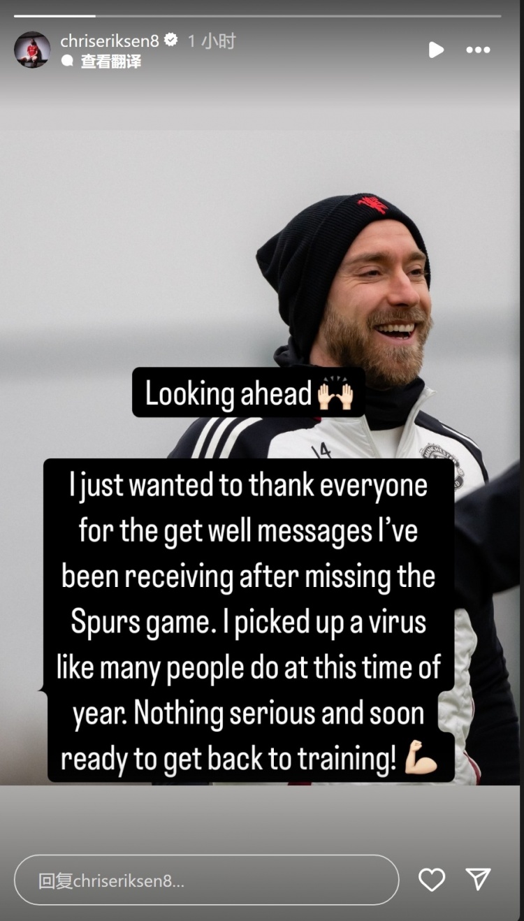 2025-02-19 20:27:52埃里克森社媒:感謝大家的祝福信息,我沒有大礙很快恢復訓練