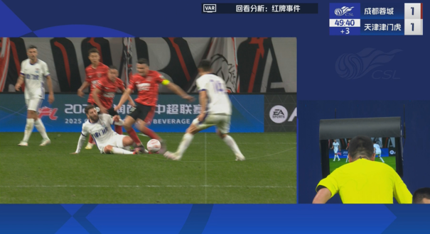2025-03-02 21:44:38蓉城少打一人!周定洋踩中哈達斯小腿,主裁看VAR后出示直紅!