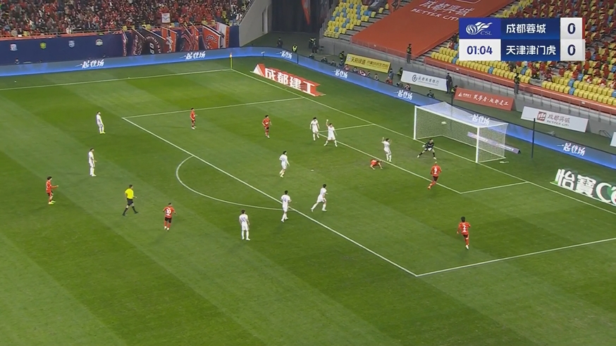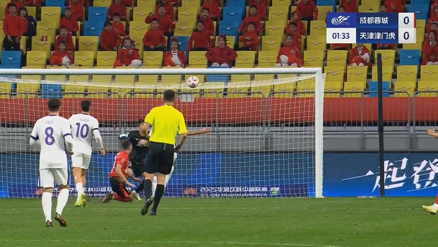 2025-03-02 21:45:00半場-胡荷韜助攻韋世豪頭球吊射破門周定洋染紅 蓉城暫1-1津門虎