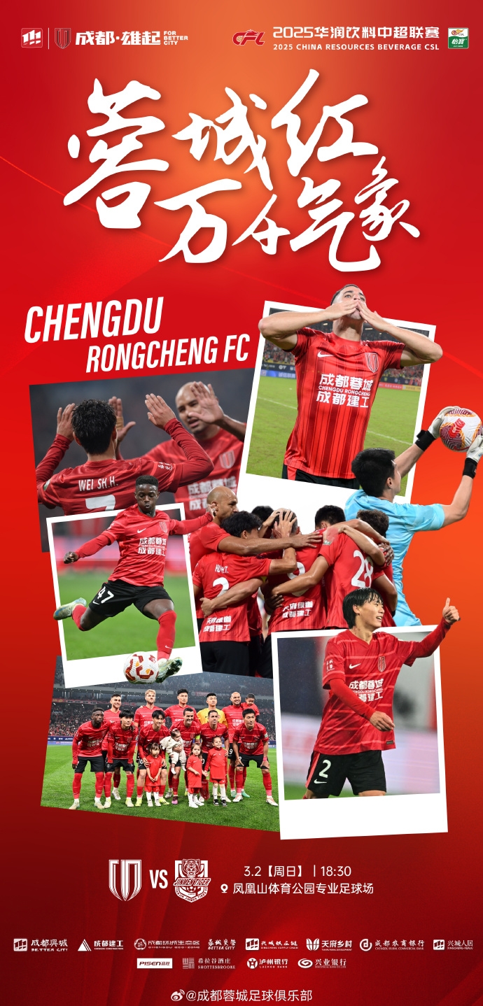 03月02日訊 北京時間今天18點30,中超第二輪,成都蓉城坐鎮主場對陣天津津門虎,賽前首發陣容公布。