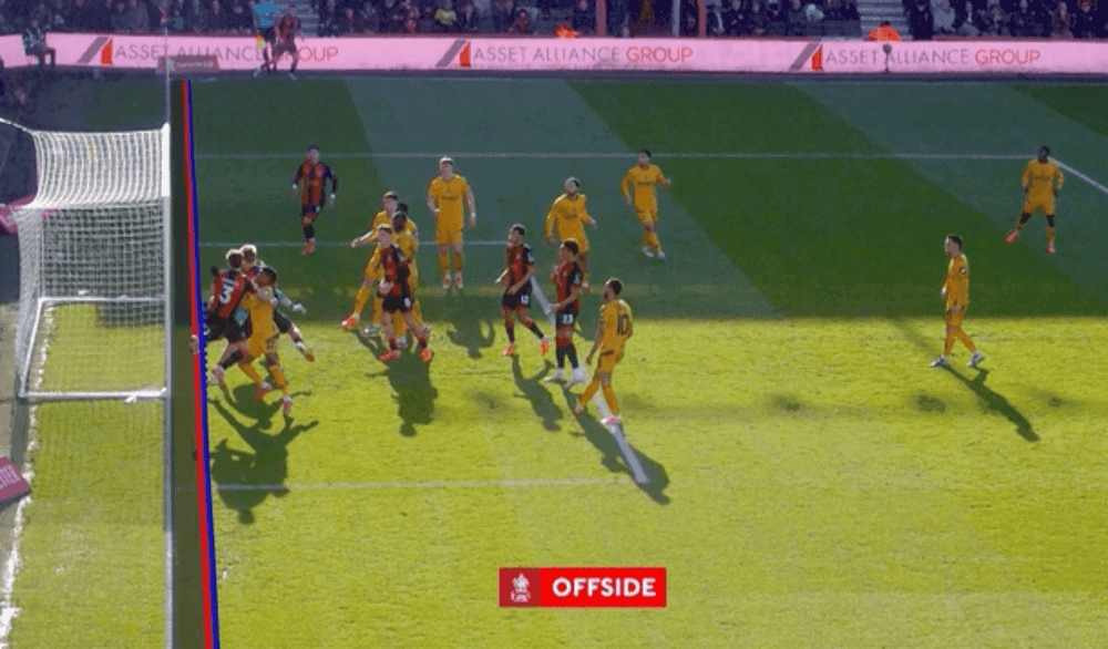 據報道,當值裁判組首先審查了伯恩茅斯球員并未手球和犯規,隨后半自動越位技術審核是否存在越位情況。