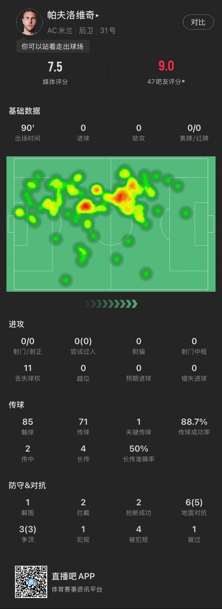 2025-02-19 20:28:55盡力局!帕夫洛維奇本場:9次對抗成功8次,貢獻1解圍2攔截2搶斷