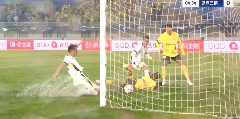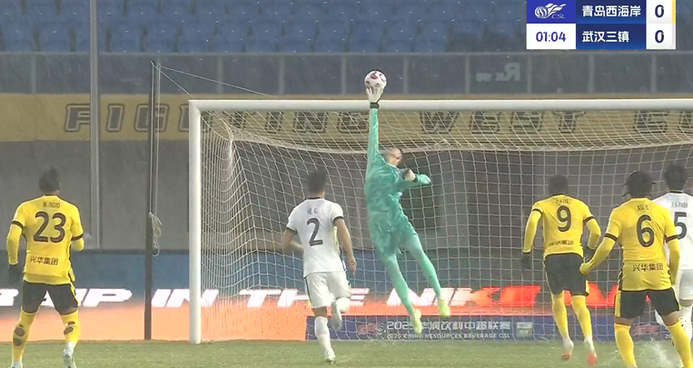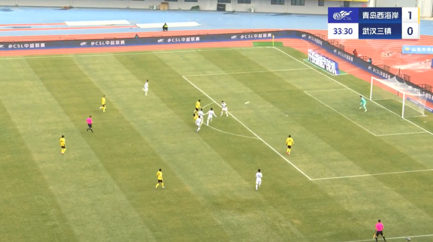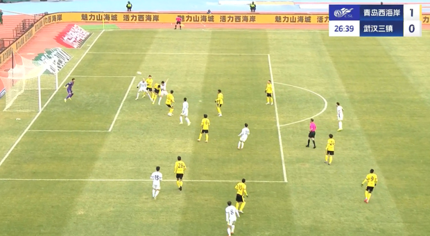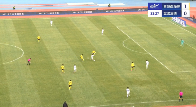 上半場補時3分鐘,青島西海岸1-0武漢三鎮。