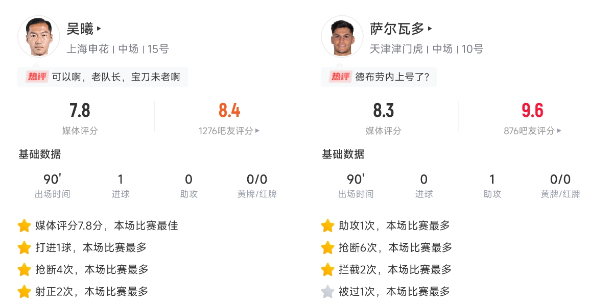 2025-03-04 11:34:47【直播吧】中超第二輪最佳球員:克雷桑毫無懸念當選,評分9.9!