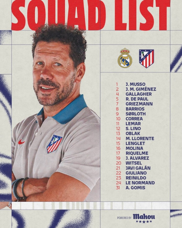 2025-03-04 23:28:44馬競公布戰皇馬名單:小蜘蛛&格列茲曼領銜鋒線,德保羅坐鎮中場