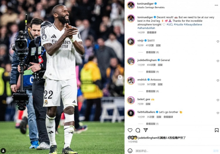 2025-03-05 14:02:44呂迪格社媒曬照:不錯的結果,但是下回合我們必須拿出最佳狀態