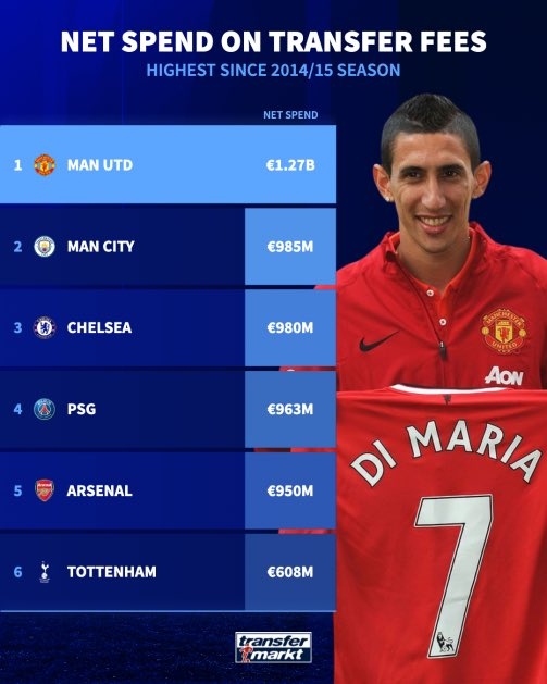 費迪南德隨后曬出弗格森離任后曼聯的引援花銷(12.7億英鎊,世界第一),補充道:“當時球隊里有19名國家隊球員,順便說一句,我們領先11分拿了英超冠軍。從那以后,球隊的引援水平一直很差。但我在過去幾天里讀到,這都是頭兒(弗格森)的錯,真是一派胡言……”
