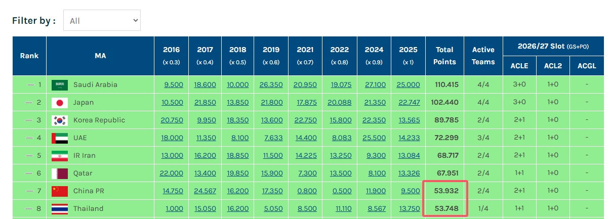 2025-03-05 19:02:14恐遭反超!海港輸球、武里南聯平,泰國技術分僅落后中國0.184分