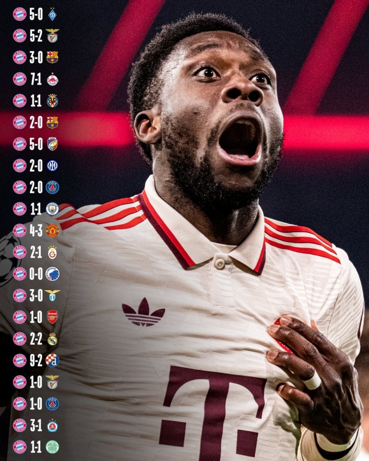 2025-03-06 00:10:39拜仁官推曬主場歐冠戰績:近4年連續21場不敗,豪取16勝5平