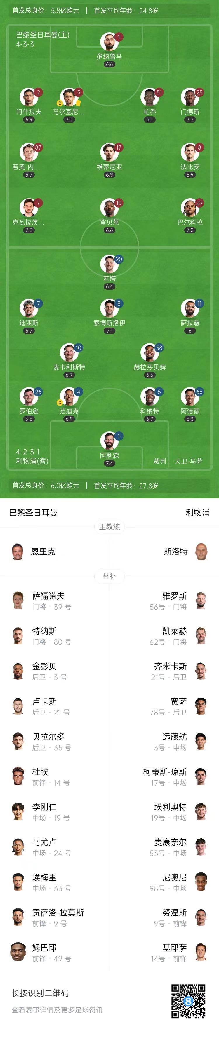 2025-03-06 05:00:10半場-巴黎暫0-0利物浦 利物浦0射門克瓦拉進球被吹登貝萊失單刀