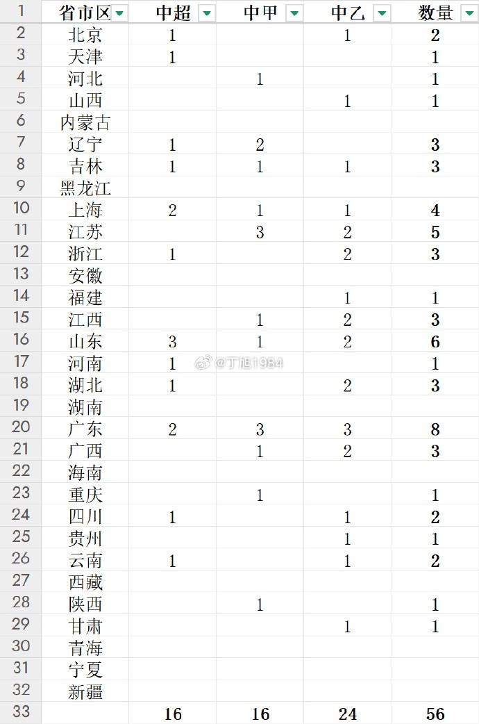 2025-03-06 13:04:23三級職業聯賽球隊分布:廣東省8隊最多,山東省6隊第二江蘇省第三