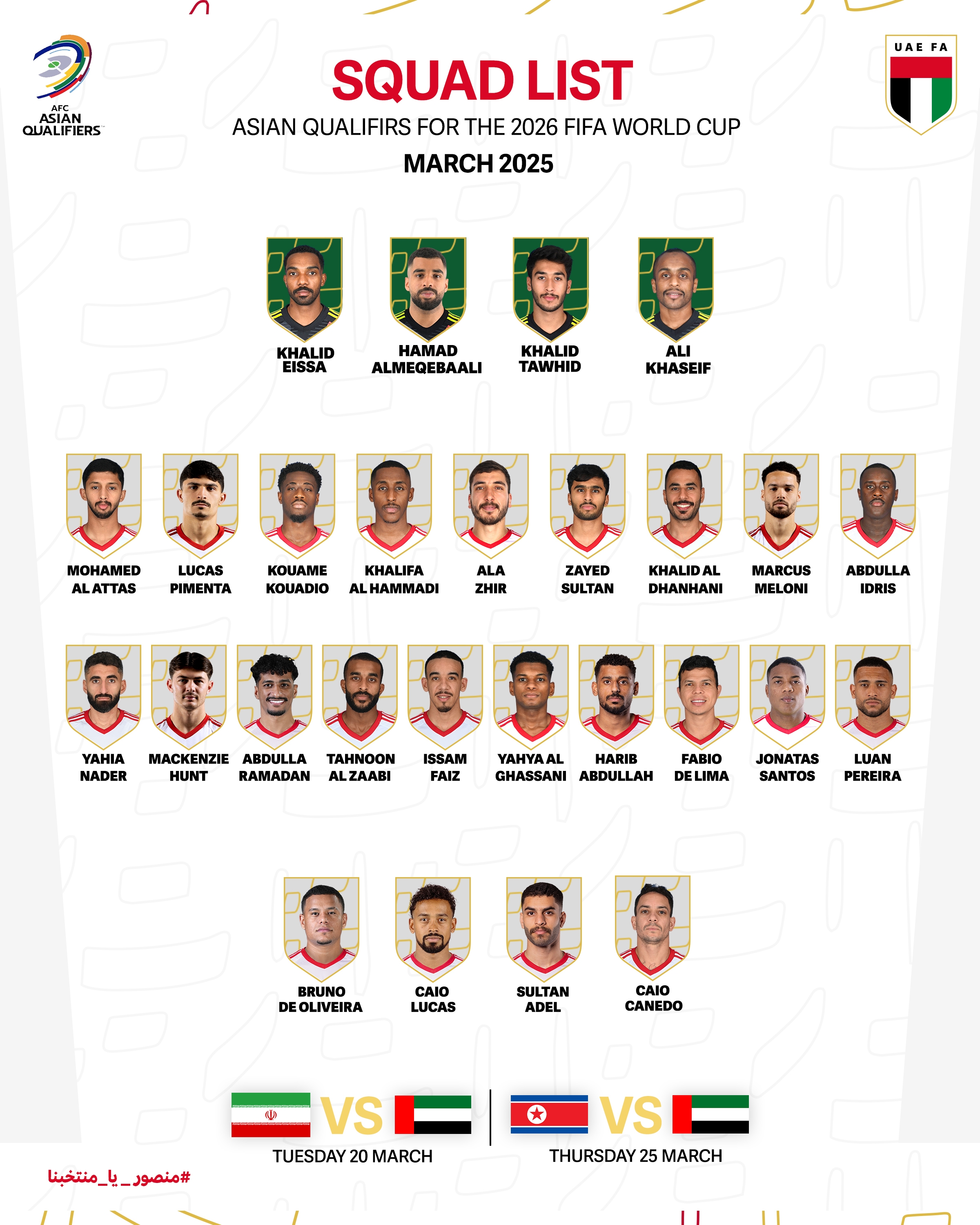 2025-03-06 13:05:18八大歸化!阿聯酋大名單征召8名巴西歸化,本月將戰伊朗、朝鮮